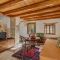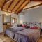 Το στούντιο βρίσκεται σε ένα ανεξάρτητο διώροφο κτίσμα και έχει πρόσβαση στην εσωτερική κοινόχρηστη ταράτσα του συγκροτήματος που βλέπει στον βράχο και τον οικισμό. Διαθέτει στο πρώτο επίπεδο καθιστικό με τζάκι και οργανωμένη κουζίνα, και στο δεύτερο ένα υπνοδωμάτιο και μπάνιο. Η κουζίνα του είναι εξοπλισμένη με ηλεκτρικό μάτι, ψυγείο, βραστήρα, καφετιέρα και διάφορα σκεύη. Το διαμέρισμα έχει δύο μονά κρεβάτια και έναν καναπέ κρεβάτι στο καθιστικό, που μπορεί να φιλοξενήσει ένα παιδί με επιπλέον χρέωση.