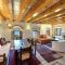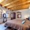 Το διαμέρισμα με τα δύο εντυπωσιακά τζάκια βρίσκεται στον πρώτο όροφο και έχει άμεση πρόσβαση στην εσωτερική κοινόχρηστη ταράτσα του συγκροτήματος, που βλέπει στον βράχο και τον οικισμό. Όλα τα δωμάτια έχουν παράθυρα με θέα στη θάλασσα. Διαθέτει μεγάλο καθιστικό, δύο υπνοδωμάτια και δύο μπάνια. Η κουζίνα του είναι εξοπλισμένη με ηλεκτρικά μάτια, ψυγείο, βραστήρα, καφετιέρα και διάφορα σκεύη. Το διαμέρισμα έχει ένα διπλό κρεβάτι, δύο μονά κρεβάτια και έναν καναπέ κρεβάτι στο καθιστικό, που μπορεί να φιλοξενήσει ένα παιδί με επιπλέον χρέωση.