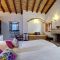 Φωτεινό δωμάτιο με ευρύχωρο μπάνιο και καναπέ κρεβάτι, στο οποίο μπορεί να φιλοξενηθεί ένα παιδί με επιπλέον χρέωση. Έχει τζάκι και παράθυρα στις τρεις πλευρές του δωματίου, με πανοραμική θέα στη θάλασσα και τον οικισμό του κάστρου. Φιλοξενεί δύο έως τρία άτομα, δύο ενήλικες και ένα παιδί, και έχει δύο μονά κρεβάτια και έναν καναπέ κρεβάτι.
