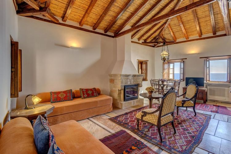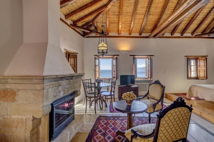 Φωτεινό δωμάτιο περιτριγυρισμένο από παράθυρα με πανοραμική θέα στη θάλασσα, το ανατολικό τμήμα των τειχών του κάστρου και τον οικισμό. Διαθέτει ευρύχωρο μπάνιο, μεγάλο καθιστικό με τζάκι, όπου μπορεί να φιλοξενηθεί ένα παιδί με επιπλέον χρέωση. Έχει πρόσβαση σε μεγάλη βεράντα, την οποία μοιράζεται με τα δωμάτια 11 και 12, με εξαιρετική θέα στη θάλασσα και τον οικισμό. Φιλοξενεί δύο έως τρία άτομα, δύο ενήλικες και ένα παιδί, και έχει ένα διπλό κρεβάτι και έναν καναπέ κρεβάτι.